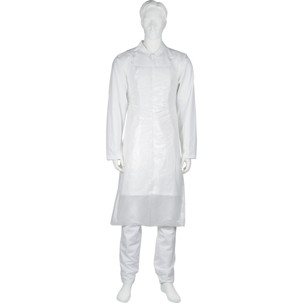 Plastförkläde på rulle 80x125 cm - 50 st är vita plastförkläden på rulle som ligger förpackade i en praktisk dispenserkartong vilket gör det lätt att ta ett förkläde åt gången. Används med fördel för att skydda kläderna inom exempelvis livsmedelsindustri, vård och omsorg. Förklädena är förpackade i dispenserpappkartong vilket gör att man bara rör ett förkläde åt gången.