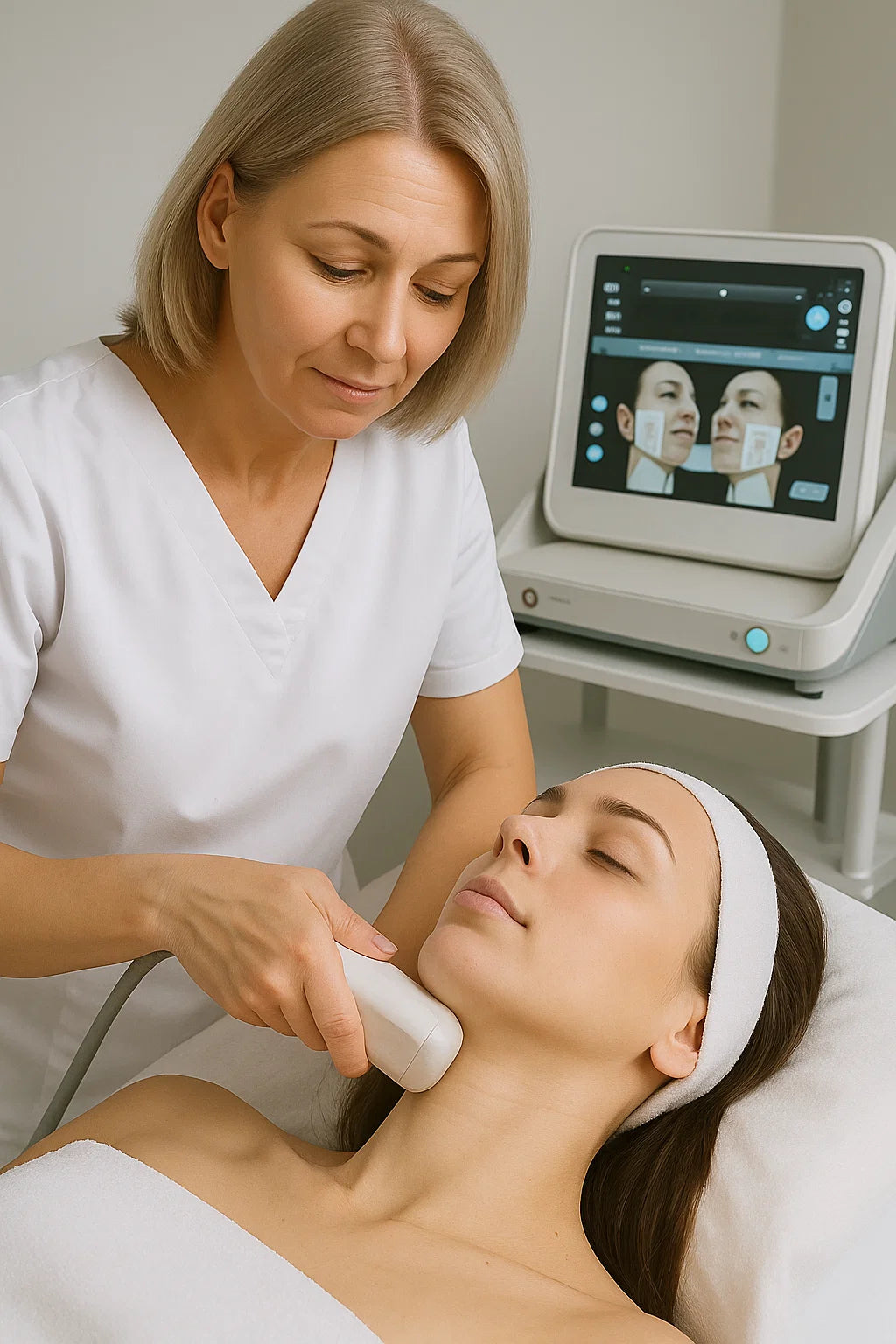 HIFU (High-Intensity Focused Ultrasound) är en icke-invasiv behandling som använder fokuserat ultraljud för att stimulera kollagenproduktion och strama upp huden.